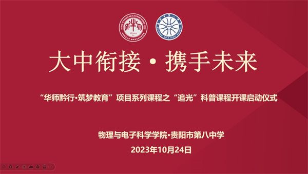 10月24日下午,买球的app排行榜前十名推荐依托“追光”科普宣讲团,面向贵阳八中开设第一期“追光”科普课程,共建“追光”科普社团,贵阳八中高一至高二,共22个班级,约1000多名学生在线参加。