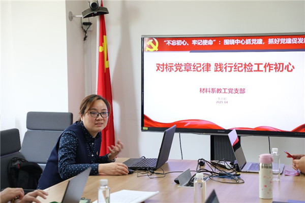 材料系教工党支部纪检委员张哲娟提出,律人先律己,基层党支部纪检委员要加强对《党章》、监督执纪工作规则等方面内容的学习,践行纪检监察工作的初心,特别是要配合支部书记开展组织生活和政治学习等任务的完成,实现巩固和护航的使命。