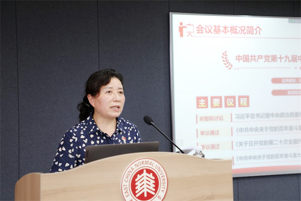 学院党委书记李恺以《以史为鉴、开创未来——深入学习贯彻党的十九届六中全会精神》为题,作“党的十九届六中全会”精神解读报告,她从党的十九届六中全会基本概况、深刻认识党的十九届六中全会的重大意义、深刻认识中国共产党百年奋斗的重大成就、深刻理解中国共产党百年奋斗的历史意义和历史经验、如何走好新时代的新征程五个方面,对党的十九届六中全会进行了全面解读。