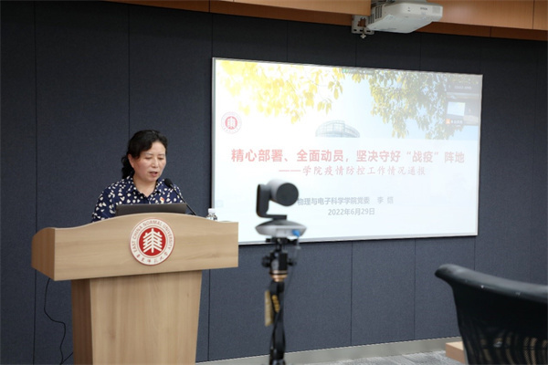 主题报告结束后,李恺向全体党员通报学院疫情防控工作整体情况,感谢学院师生党员同志在疫情期间的奋战坚守和无私奉献。李恺谈到,为了打赢这场我们必须胜利的“战役”,坚决保障校园安全,学院党委积极响应学校疫情防控工作部署要求,从严从实从细抓好疫情防控工作,切实筑牢生命安全健康防线,师生党员坚守抗疫一线、投身志愿服务,带头当好“宣讲员”“示范者”“贴心人”,为校园疫情防控工作、打好上海保卫战贡献力量。