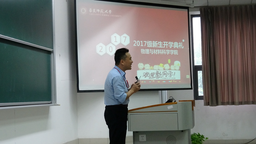在九月这个清秋送爽的收获季节,15日上午9:30,我院在第二教学楼123室隆重举办了2017级新生开学典礼。这次典礼是在新成立的光华书院物理专业的学生是在光华书院和物理与材料科学学院共同管理的背景下召开的。物理与材料科学学院院长程亚、光华书院院长温玉亮、学院党委书记马学鸣、书院党委书记赵旌旌、学院副院长周先荣、武愕、书院副院长谢雨杉、书院副书记涂皘、学院教师代表赵振杰以及学院和书院的辅导员等出席了本次开学典礼。典礼由学院党委副书记马红梅主持。