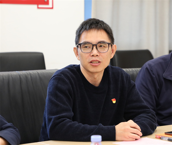 潘海峰作精密光谱教工一支部的工作情况简介,他谈到,在校党委组织部和学院党委的指导支持下,支部相继入选了第三批新时代高校党建双创工作“全国党建工作样板支部”创建培育单位和上海市“党支部建设示范点”,依托国重实验室的科研高地开展特色党建工作,把“科学家精神传承”打造成支部重点建设的党建品牌。乔登江院士为国家的“两弹一星”工作作出过重大贡献,曾被授予“文职特级军衔”。来学院工作后,淡泊名利、潜心育人,在指导学院和国重实验室的建设中发挥了重要作用。未来支部将以学习乔登江院士事迹为起点,不断丰富“科学家精神传承”的党建品牌内涵,期待能与乔登江院士事迹展览馆开展多层面的深入交流合作,树立好党员身边的“榜样”,推动学习教育走深走实。