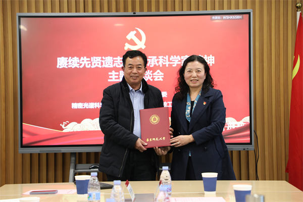11月15日上午,精密光谱科学与技术国家重点实验室教工第一党支部开展“赓续先贤遗志·传承科学家精神”主题座谈会,江苏省高邮市乔登江院士事迹展览馆筹建负责人乔国平,学院党委书记李恺,学院青年教师代表王向晖、张杰、齐红新,退休党支部书记章继敏受邀参会,座谈会由精密光谱国重实验室教工第一党支部书记潘海峰主持。