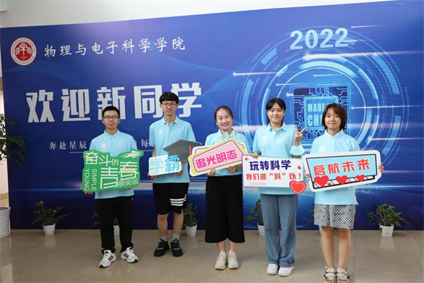 迎新期间,学院党委设立党员服务岗,师生党员佩戴党员徽章、亮明身份,为新同学们答疑解惑,主动承担搬运行李等任务,在迎新工作中担当责任。在物理楼,2022级新同学穿上崭新的院服,和辅导员一起在迎新背景墙前合影,留下在师大的启程身影。