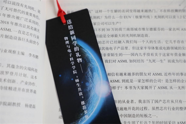 作为学院送给新同学的第一份礼物,“师生共读”书签记录了《光刻巨人:ASML崛起之路》《物理世界的数学奇迹》《旷世奇才:巴丁传》等学院“师生共读”推荐书目及简介点评,也期待2022级新同学通过多读书、读好书,养成科学精神、立志科技报国。9月9日晚,学院副院长武海斌教授将为2022级新生作首场导读,通过导读《巴丁传》来讲述诺贝尔物理学奖获得者约翰·巴丁的传奇故事。
