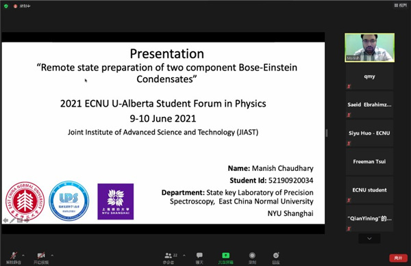 2021年6月9日-10日,学院与阿尔伯塔大学先进科学与技术联合研究院联合举办了“2021十大正规买球的app排行榜—阿尔伯塔大学物理类研究生论坛”。论坛采用Zoom线上会议模式,来自十大正规买球的app排行榜和阿尔伯塔大学的40余名研究生线上参与和学习交流。会议由2020级理论物理专业硕士研究生崔志谊主持。