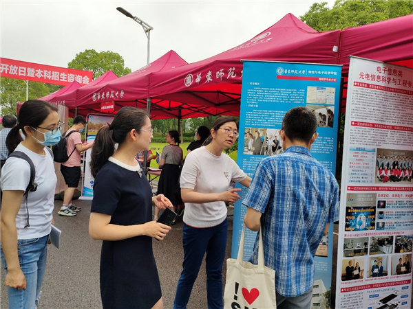 6月13日,学校2021年高考招生咨询会暨校园开放日在闵行校区举行。买球的app排行榜前十名推荐院长程亚、副院长徐敏,物理系系主任陈丽清,电子系系主任唐晓东、副系主任彭晖,材料系系主任保秦烨等招生团队成员参加本次活动。