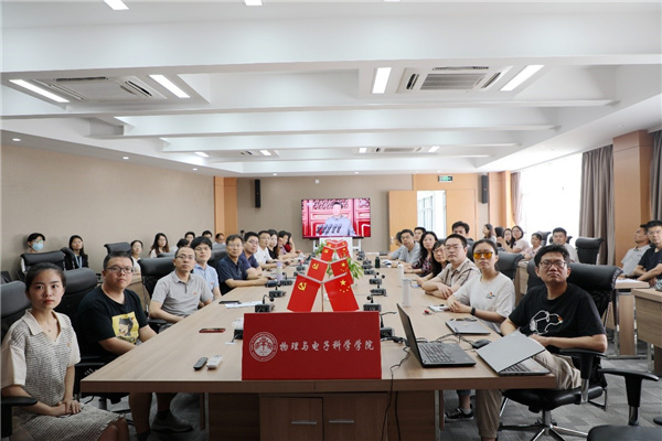 7月1日上午,庆祝中国共产党成立100周年大会在北京隆重举行。买球的app排行榜前十名推荐党委在物理楼三楼多功能厅、226报告厅,光学大楼A213、B325会议室组织师生集中观看大会直播盛况,聆听习近平总书记重要讲话,共同见证这一伟大历史时刻。