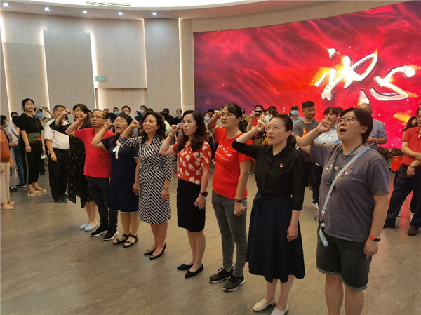 在《伟大的开端》展厅,党员同志们通过建党初期的珍贵文献、照片、实物、音像资料等,亲历了中共一大会议场景,深刻感受到了我党从弱到强、多次绝处逢生、在攻坚克难中迎来最终胜利的光辉发展历程。
