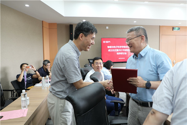7月13日,买球的app排行榜前十名推荐“名师工作室”成立仪式暨2021年拔尖人才培养研讨会在物理楼三楼多功能厅举行。汕头大学副校长陈敏教授、北京大学刘玉鑫教授、吉林大学张汉壮教授、南京大学吴小山教授、上海交通大学胡其图教授、复旦大学教务处处长蒋最敏教授、南开大学刘玉斌教授、同济大学张建卫教授,我校教务处处长孟钟捷教授、副处长周先荣教授,学院院长程亚教授,学院党委副书记、精密光谱科学与技术国家重点实验室主任兼党总支书记吴健教授,学院挂职副院长路俊哲副教授等50余名校内外专家现场参会。山西大学贾锁堂教授、清华大学阮东教授及相关教师线上参会。会议由学院副院长徐敏、物理专业责任教授刘宗华共同主持。