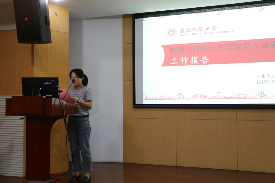 接着学院第六届研究生会主席任秀敏代表第六届研究生会作工作报告。任秀敏同学回顾了第六届研究生会在过去一年中所做的学术、文体、志愿者、素质拓展等各项工作,并从成果、经验等各个方面进行了总结,并希望下一届院研究生会能团结协作,充分调动大家的积极性,增强学院活力,更好地为学院师生服务,开创新的局面。