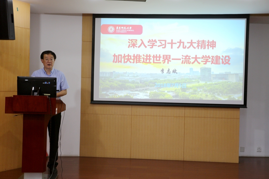 2018年7月5日下午13:30十大正规买球的app排行榜副校长李志斌来学院做作题为《深入学习十九大精神加快推进世界一流大学建设》的专题报告,报告会由学院党委书记李恺、学院院长程亚主持,学院全体教职工参加了本次报告会。