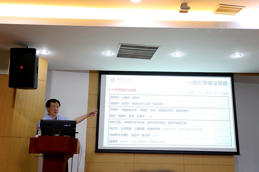 李志斌校长指出,随着十三五”规划的出台和推进,特别是2017年8月1日中办国办联合印发《关于深化教育体制机制改革的意见》,后,应国家和地方发展需求,高教综合改革新要求,国家及上海市政府各相关部门已然开始密集部署一流大学建设,主要呈现四个指向:(1)引导高校深化供给侧改革:加强教学科研和社会服务活动的组织性,为国家地方重大战略、经济社会发展提供高质量的服务.(2)推进综合改革深化:系统推进育人方式、办学模式、管理体制、保障机制的改革,激发各类主体的创新活力.(3)加强绩效评估:通过动态调整引导高校竞争,通过引导高校竞争提高办学内涵质量,进而提升高等教育总体水平。(4)强化师范大学办学特色:通过制定标准、配给资源、优化评估,提高师范大学的师范教育积极性和质量。