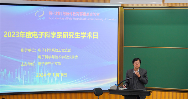 1月6日,为进一步提高电子科学系研究生的学术交流能力,营造追求卓越、求实创新的良好氛围,由电子科学系研究生党支部主办,电子科学系教工党支部、电子科学与技术学位分委会指导的“2023年度电子科学系研究生学术日”活动在闵行校区二教231室成功举办,活动由电子系教工党支部书记黄荣主持,分为口头汇报和墙报展示两个环节,电子系全体研究生和教师参加。