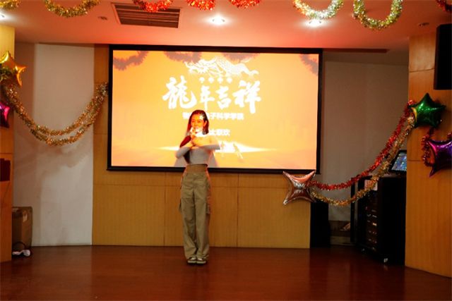 1月10日下午,学院在物理楼226报告厅举办2024年教职工迎新春联欢活动,学院党委书记李恺,副院长徐敏、胡炳文,工会主席赵振杰等出席。活动由学院专职辅导员王儒佳、王元力主持。