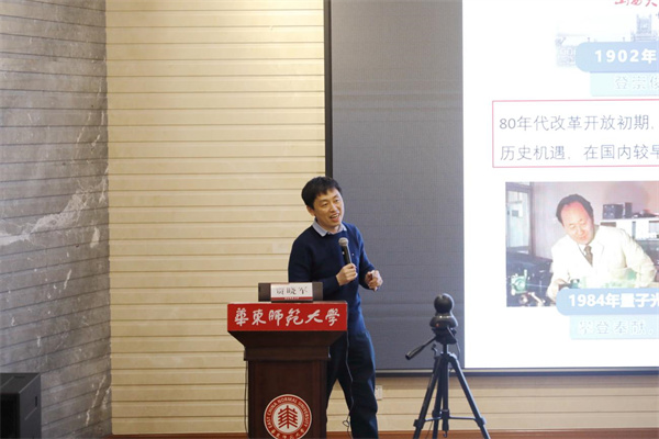 1月18日上午,买球的app排行榜前十名推荐“寒假预备周”思维训练营系列活动在闵行校区光学大楼报告厅开展,山西大学物理电子工程学院院长贾晓军教授受邀作“连续变量量子信息研究”报告,报告由精密光谱科学与技术国家重点实验室荆杰泰教授主持。学院教师代表和百余名本科生、研究生线上线下共同参加。
