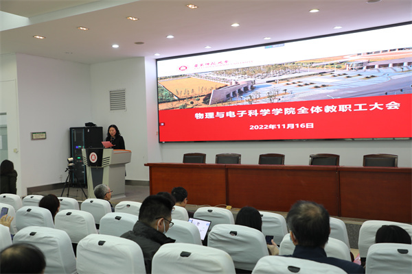11月16日下午,买球的app排行榜前十名推荐在闵行校区四教106报告厅召开11月全院教职工大会。我校终身教授、上海市学习贯彻党的二十大精神专家宣讲团成员齐卫平教授应邀作题主题报告。学院党政班子成员通报重点工作,孟宪承书院副院长梁宏亮介绍物理专业师范生培养情况。会议由学院党委书记李恺主持,三百余名师生线上、线下参会。