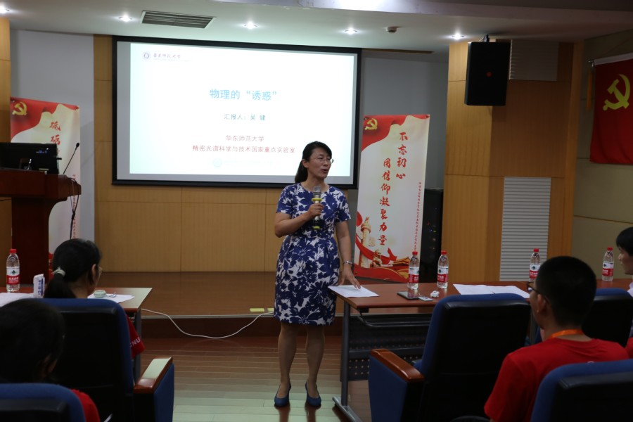 精密光谱国家重点实验室主任吴健教授以物理的“诱惑”为题,讲述了他作为物理系优秀校友与华师大的不解之缘,并以诺贝尔奖获得者的故事激励同学们,成功需要兴趣+勤奋。