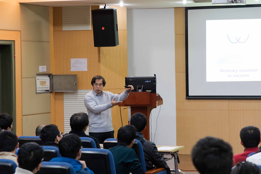 2017年12月8日上午10:30,在十大正规买球的app排行榜闵行校区物理楼226报告厅,清华大学陈曦教授应我院副院长周先荣教授邀请,为16,17级物理菁英班本科生做关于凝聚态材料中的拓扑的专题讲座,本次讲座由周先荣副院长主持,同时邀请我院其他相关专业教师前来参加。