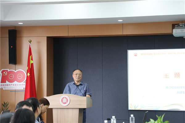 电子信息科学与技术专业点长高建军教授从教学督导的角度,与青年教师交流课堂教学经验,分享了课堂提问技巧,特别是如何与学生进行课堂互动,还给青年教师提出了“不要坐着讲课”“口齿要清晰”“注意抑扬顿挫”“突出知识点”“加强师生互动”等建议。