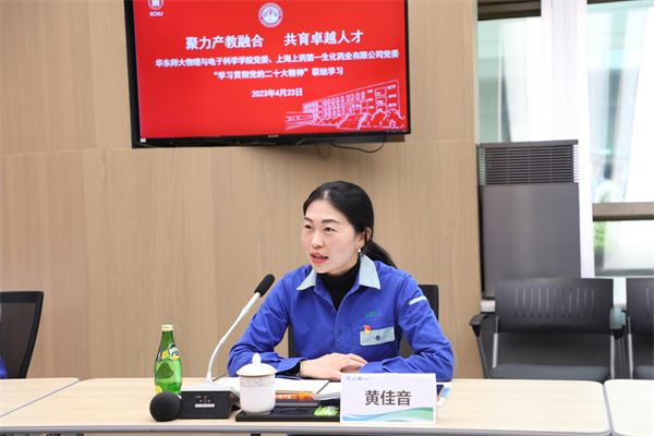 黄佳音作公司情况介绍。她谈到,上药第一生化始创于1937年,作为世界500强集团的核心企业,上药第一生化始终秉承“创新、诚信、合作、包容、责任”的核心价值观和“针针献深情,一生可信赖”的企业精神,打造具有行业美誉度的领先品牌药制造商和健康领域服务商。近年来,凭借自主知识产权优势,公司承担了多个国家重大专项以及市级项目,深度参与了“超限制造”上海市市级科技重大专项。黄佳音表示,公司高度重视党建引领在实现企业高质量发展中的作用,通过打造“第一”品牌,整合“第一”文化、淬炼“第一”精神,涵育奋进企业 “四好”文化,期待与买球的app排行榜前十名推荐党委携手,在推进“产学研”一体化、开展校企联动创新、推进科研成果转化等方面深入合作。