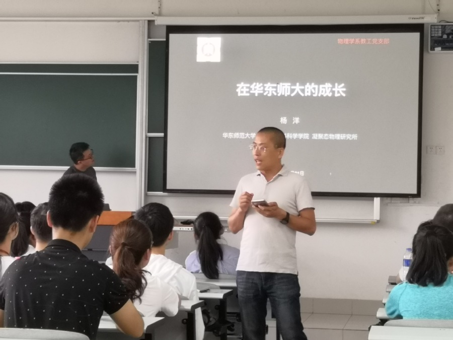 支部副书记杨洋老师为同学们作了题为《漫谈我在华东师大的成长》的报告。报告中,杨洋老师先从有趣的物理现象出发,对自己目前从事的研究工作做了简要说明,由自身经历出发,讲述了他在十大正规买球的app排行榜的学习、国外的科研深造以及回归母校工作的心路历程,从基本生活需要到远大理想,畅谈了我们为什么要工作,怎样去工作,话语间流露出了他对师大浓浓的爱与情怀。