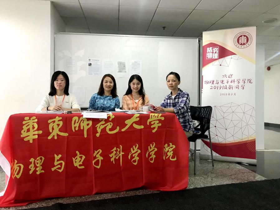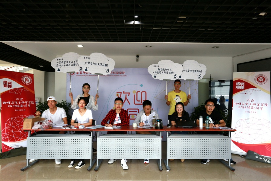9月1日上午,学院在闵行校区物理楼二楼大厅、光学大楼一楼大厅、大学生活动中心C区以及中北校区理科大楼A楼一楼,分别设立了咨询服务点、迎新工作站。