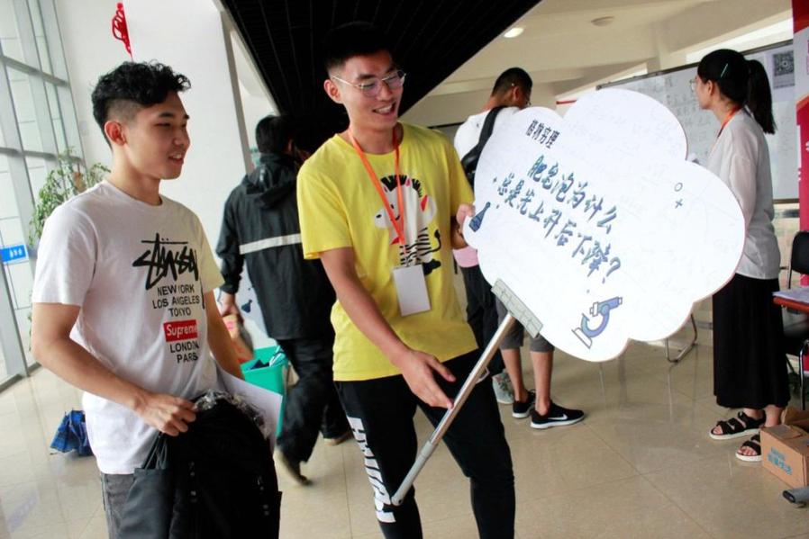 为进一步凸显学院专业特色,引导同学们善于发现生活中的物理学、光学原理,学院团委结合日常生活中看似随意的现象,设计了“肥皂泡为什么总是先升后降”“闪电为什么总是弯弯曲曲”等趣味性问题,前来报到的新同学饶有兴趣、积极参与问答。