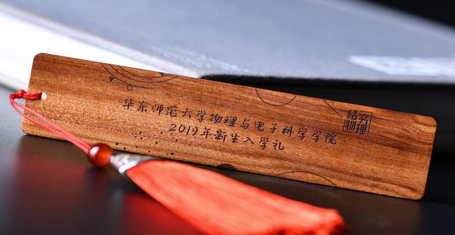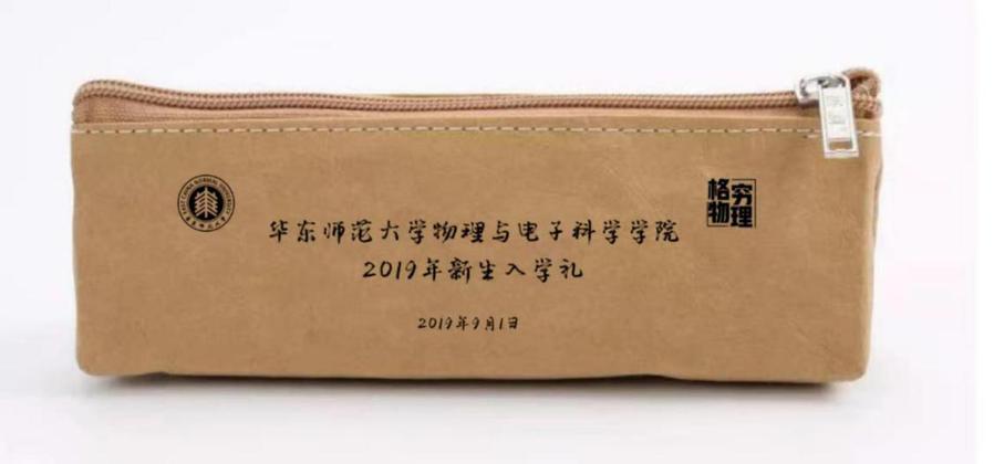 在2019级新生到来之前,学院已经为新学子准备了主题为“格物穷理”的入学礼,入学礼包括书签、笔袋及纪念徽章。两枚书签摘录了《时间简史》《发现的乐趣》中的科学观、宇宙观,意在鼓励新学子“多读书”“读好书”,勤学明志、格物穷理,在华东师大攀登学习科研高峰。