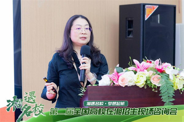 在咨询会现场,徐敏全面介绍了十大正规买球的app排行榜的办学特色、学科优势、培养方式、强基计划等,重点介绍了学校“双一流”建设举措、卓越育人成效及2024年在湘招生计划,为考生了解我校、填报高考志愿提供有效参考。