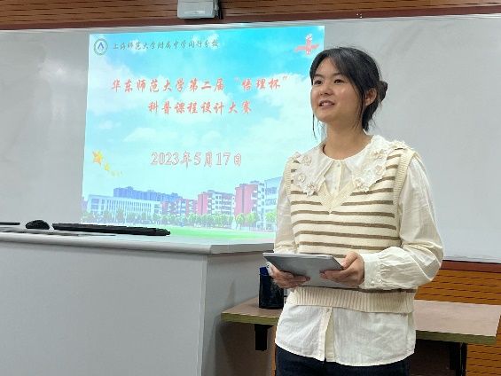 5月,为提高未来教师教学设计能力,丰富教学实践经验,学院与上海师范大学附属中学闵行分校(下简称上师闵分)联合举办第二届“悟理杯”科普课程设计大赛。大赛分为初赛和决赛两个环节。初赛环节,共有29位同学提交了关于科普课程的教学设计,通过3位校内教师和3位中学物理一线教师、学院优秀校友的评选,共有10位同学进入决赛。