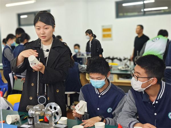 中学生八人一组,轮流参与实验。志愿者通过演示让学生直观感受实验现象,再加以理论讲解,让学生从理性思维的角度理解实验现象产生的原因;同时通过让学生参与实验,制作相应设备,复现实验现象,体验物理实验的乐趣。最后,志愿者对各种物理现象背后的物理知识进一步总结,加深了中学生对知识的理解。同学们纷纷表示,希望今后有更多机会参加动手实验,深入探究物理实验的现象和原理。