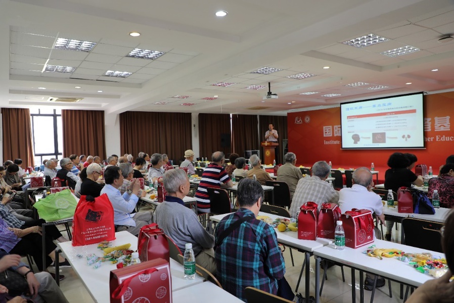上海市中医文献馆主治医师、第六批全国老中医药经验传承继承人石云随后作“治未病与养生”主题讲座,为离退休教师讲解中医养生之道,并现场答疑解惑,交流健康要诀。