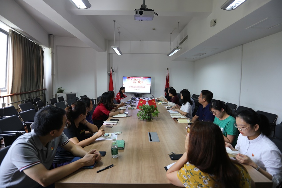 会上,全体党员首先观看了新华社为庆祝新中国成立70周年制作的宣传短片《新生(1949-2019)》,伴随着《没有共产党就没有新中国》的旋律,支部党员通过一个个鲜活的人物、实例重温了党和国家的初创和成长历程。随后,章继敏传达了学校和学院党委关于“不忘初心、牢记使命”主题教育的统一部署,特别强调了读原著、悟原理的要求,并对支部“八个一”工作安排、“党员自学、轮流领学、集中研学”的学习形式进行了具体落实。