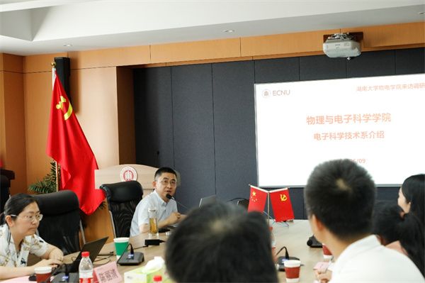 6月9日上午,湖南大学物理与微电子科学学院副院长赵楚军一行来院调研。我院党委书记李恺,副院长助理、物理系系主任陈丽清,电子系系主任唐晓东,电子系教工党支部书记黄荣参会,副院长胡炳文线上参会,会议由李恺主持。